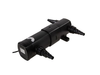 Das Gehäuse lässt sich dank des Quick-Lock-Systems ganz einfach öffnen, was einen schnellen Lampenwechsel ermöglicht. Im Lieferumfang enthalten sind Anschlussoptionen für Schlauchgrößen von 20, 25, 32 und 40 mm. Bitte beachte, dass Schlauchschellen separat erworben werden müssen, um die Schläuche sicher zu befestigen.