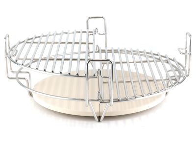 Der Rahmen ist aus Edelstahl gefertigt. Dieses Material ist hitzebeständig, rostet nicht schnell und ist leicht zu reinigen. Um sicherzustellen, dass dieses System in Ihren Kamado passt, ist es wichtig, den Innendurchmesser Ihrer Feuerbox, der Keramikschale, in der die Kohlen liegen, zu messen. Dieses System ist für eine Feuerbox mit einem Innendurchmesser zwischen 42,5 cm und 45,5 cm geeignet.