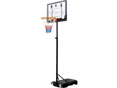 Sie können die Höhe des Rings von mindestens 1,60 Meter bis maximal 2,10 Meter einstellen. Dadurch ist der Korb für verschiedene Altersgruppen geeignet. Der Standfuß ist mit Rollen ausgestattet, wodurch Sie den Basketballkorb leicht bewegen können, um ihn zu verstauen oder an den idealen Spielort zu stellen. Für die notwendige Stabilität füllen Sie den Standfuß einfach mit Sand oder Wasser.
