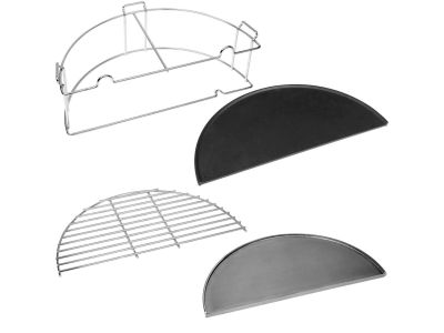 Der wichtigste Teil dieses Sets ist der Grillaufsatz. Damit schaffen Sie ganz einfach eine zweite Grillebene über dem Standard-Grillrost. Dies verschafft Ihnen zusätzlichen Platz und positioniert das Grillgut weiter entfernt von den heißen Kohlen. So können Sie Gerichte langsamer garen oder warmhalten, während Sie auf der unteren Ebene andere Zutaten grillen.