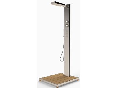 Die Dusche steht sehr stabil auf der mitgelieferten Bodenplatte aus Verbundwerkstoff (WPC) mit den Maßen 84 x 75 cm. Dank ihres Gewichts von 36 kg brauchen Sie sich keine Sorgen zu machen, dass sie umkippt. Der Duschkopf befindet sich in einer komfortablen Höhe von 200 cm. Obwohl die Dusche größtenteils aus Edelstahl gefertigt ist, ist es gut zu wissen, dass nicht alle Teile vollständig rostfrei sind, sodass im Laufe der Zeit an bestimmten Stellen Rostbildung auftreten kann.