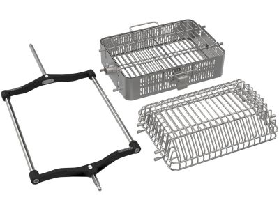 Mit dem Kamado Joe Korb-Set erweitern Sie die Möglichkeiten Ihres Joetisserie-Drehspießes. Dieses dreiteilige Set, bestehend aus einem flachen und einem runden Korb, ist dafür konzipiert, Ihre Gerichte rotierend zu garen. Da der Kamado geschlossen bleibt, zirkulieren Säfte und Rauch optimal. Das sorgt für ein zartes und saftiges Endergebnis mit einem intensiven Raucharoma.