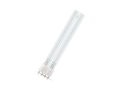 Diese Philips PL-Lampe hat eine Leistung von 55 Watt und einen 4-Pin-Anschluss. Überprüfen Sie immer, ob diese Spezifikationen mit den Anforderungen Ihres UV-C Geräts übereinstimmen, denn ein falsches Modell kann Schäden verursachen. Die Installation ist einfach. Achtung, schauen Sie niemals direkt in eine brennende UV-C Lampe, da die Strahlung schädlich für Ihre Augen ist. Die meisten Filter sind deshalb mit einem Sicherheitsschalter ausgestattet, der die Lampe ausschaltet, sobald Sie das Gehäuse öffnen.