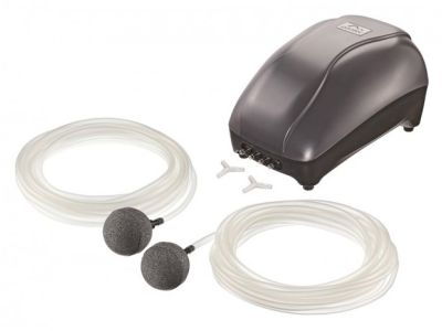 Das Set wird komplett geliefert, inklusive zwei fünf Meter langen Luftschläuchen, zwei Ausströmersteinen, Y-Verteilern und sogar vier Ersatzmembranen. Damit kannst du die Installation flexibel gestalten und das System einfach warten. Du hast also sofort alles zur Hand, um deinen Teich mit ausreichend Sauerstoff zu versorgen.