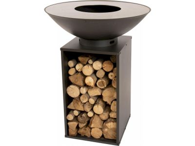 Unter der Feuerschale finden Sie einen integrierten Stauraum für Brennholz. So haben Sie immer Holzscheite zur Hand, um das Feuer am Brennen zu halten, sowohl während eines sommerlichen Grillabends als auch an einem kühleren Abend. Bedenken Sie jedoch, dass die Lagerfläche offen ist, wodurch das Holz bei einem Regenschauer nass werden kann.