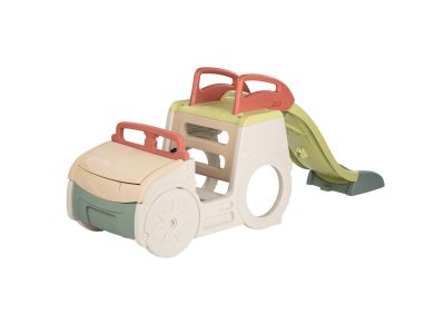 Das Smoby Adventure Car ist ein multifunktionales Spielgerät in Form eines Autos, das die Fantasie Ihres Kindes anregt. Dieses Gerät kombiniert verschiedene Spielelemente für den Garten. Ihr Kind kann sich hinter das Steuer setzen und die funktionierende Hupe benutzen, die Rutsche hinuntersausen oder im Sandkasten spielen. Es ist ein stationäres Spielgerät, was bedeutet, dass die Räder sich nicht wirklich drehen können.