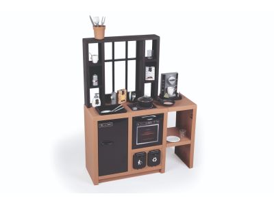 Die Smoby Spielküche Loft hat ein modernes, industrielles Design, das gut ins Wohnzimmer passt. Im Gegensatz zu vielen bunten Spielküchen hat dieses Modell eine stilvolle Ausstrahlung. Die Küche ist aus stabilem Kunststoff gefertigt und für Kinder ab drei Jahren geeignet. Mit einer Höhe von 96,7 cm und einer Breite von 74 cm bietet sie eine geräumige Spielfläche für dein Kind.