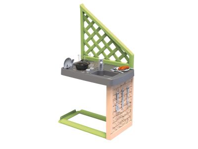 Die Sommerküche lässt sich ganz einfach über ein praktisches Klicksystem am Spielhaus befestigen. Der Kunststoff ist mit einer Anti-UV-Behandlung versehen. Dieser Schutz sorgt dafür, dass die fröhlichen Farben lange schön bleiben und nicht durch die Sonne ausbleichen, sodass Sie länger Freude an der Küche haben.
