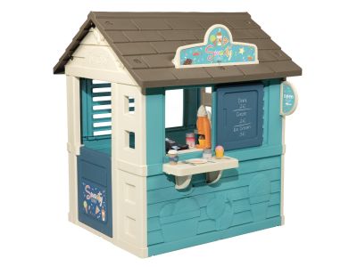 Dieses Spielhaus wird mit einem umfangreichen Zubehörset geliefert, um das Rollenspiel zu vervollständigen. Ihr Kind kann in der Pfanne Pfannkuchen backen, Eis verkaufen und mit dem Kartenlesegerät und den Kassenbons abrechnen. Das Set enthält außerdem Spielzeug-Lebensmittel, einen Teller, Besteck und eine Tasse. Ein schönes Detail ist die Schiebeluke, die Sie auch als Kreidetafel verwenden können, um die Tageskarte aufzuschreiben.