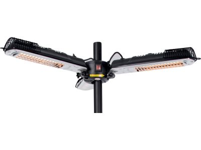 Die Arme des Heizers sind einklappbar. Dies ist eine praktische Funktion, denn so können Sie den Sonnenschirm schließen, ohne den Heizer entfernen zu müssen. Die Montage an einer Sonnenschirmstange mit einem Durchmesser zwischen 25 und 60 Millimetern ist einfach. Die Heizelemente sind zudem sehr langlebig, mit einer erwarteten Lebensdauer von mindestens 8000 Betriebsstunden.