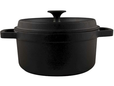 Der Topf ist aus Gusseisen gefertigt, einem Material, das für seine hervorragende Wärmeverteilung und die Fähigkeit, Wärme lange zu speichern, bekannt ist. Die beiden stabilen Griffe sind aus einem Stück mit dem Topf gegossen, sodass Sie ihn immer sicher anheben können, auch wenn er voll ist. Der Bakelit-Knopf auf dem Deckel ist hitzebeständig bis 200 °C, wodurch der Topf auch für den Einsatz im Backofen geeignet ist. Bitte beachten Sie, dass Gusseisen Pflege benötigt. Waschen Sie den Topf von Hand und fetten Sie ihn regelmäßig ein, um seinen optimalen Zustand zu erhalten.