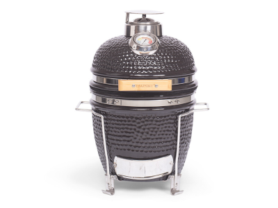 Mit einer Grillfläche von Ø 33 cm haben Sie genug Platz für Gerichte für ein bis zwei Personen. Dank des integrierten Deckelthermometers behalten Sie die Temperatur für ein perfektes Grillergebnis genau im Auge. Der Kamado wird komplett mit einem stabilen Untergestell aus Edelstahl und einem Grillrost geliefert, sodass Sie sofort loslegen können.